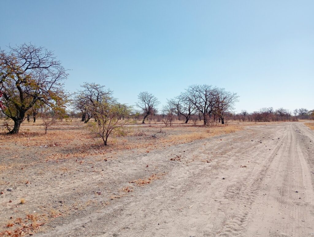 道中はほぼ何もない一本道。ボツワナらしい広大な風景が続きます。