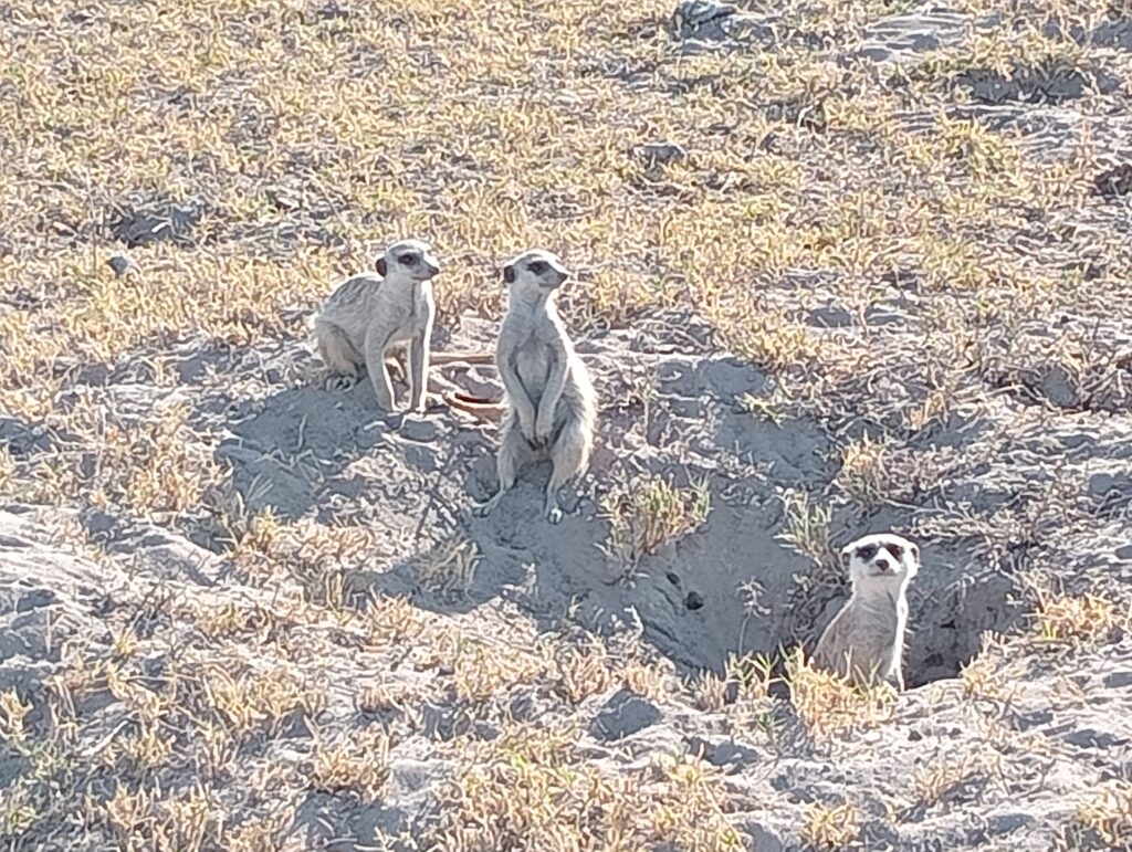 ミーアキャット このあたりの地面は巣穴という名の地下迷宮になっているらしい