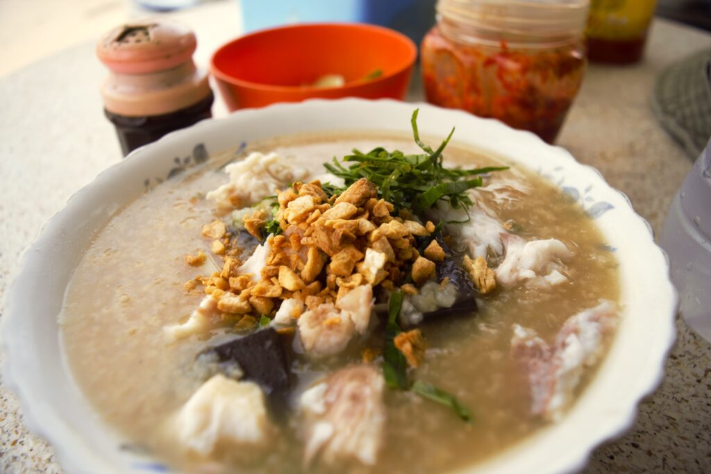 シェムリアップの食堂で食べたカンボジアのお粥。朝食の定番