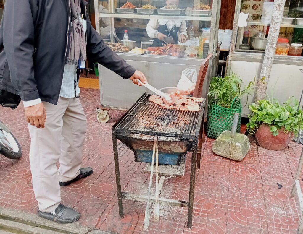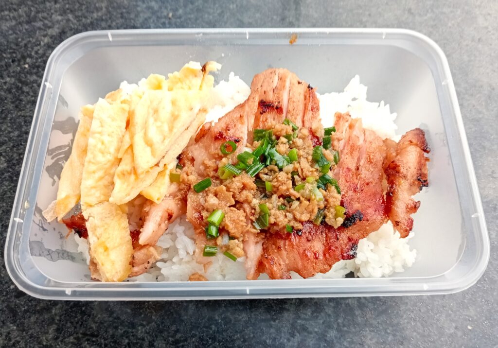 店先で焼いた豚肉をそのままごはんにのせるスタイル👆