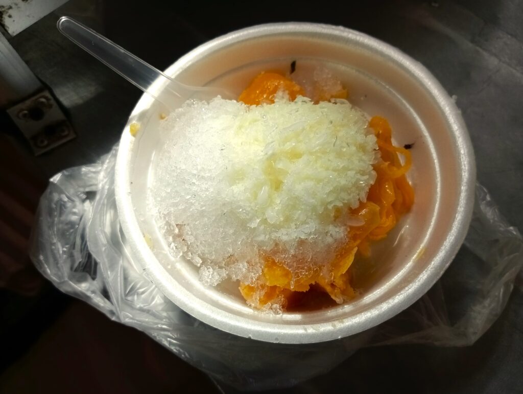暑い夏、ボンアエムクルップモックの店を見つけると買わずにはいられず…