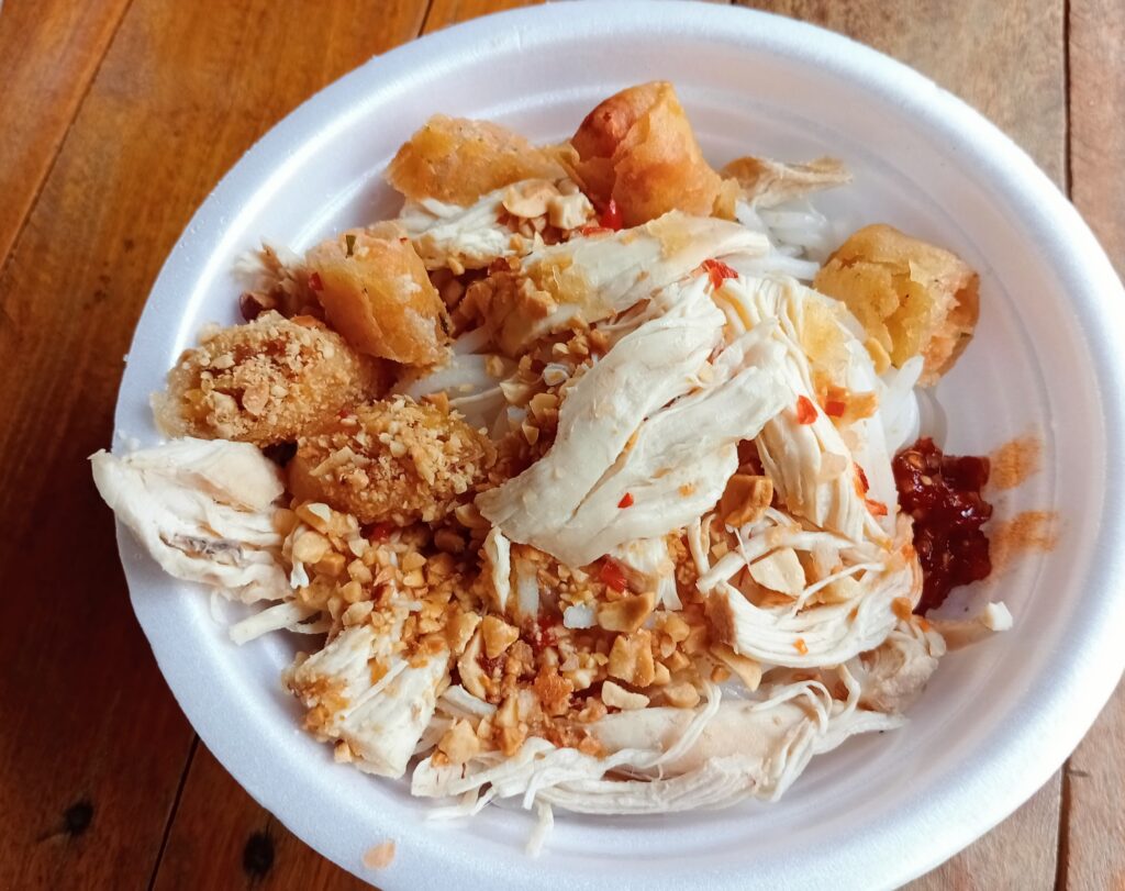 クセのないあっさりした味で、ビーフン+たっぷり蒸しチキン+ナッツ(お好みでチリ)がシンプルに美味しい!朝食にちょうどいい軽さでした。