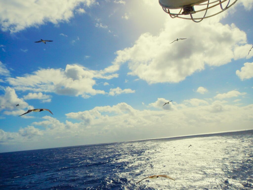 小笠原諸島に近づくと空にカツオドリが舞うようになる