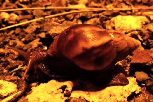 ゆっくりと動くアフリカマイマイや大きなヤドカリ。