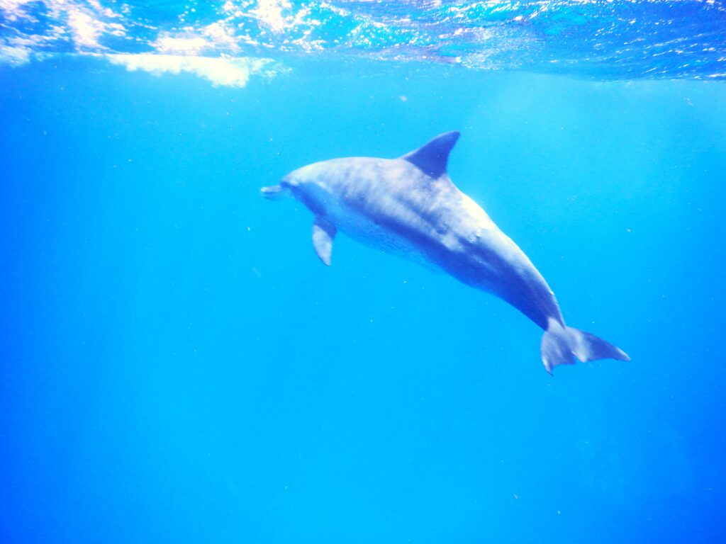 好奇心旺盛なイルカは一緒に遊んでくれる…が、泳ぎが速いので置いて行かれる