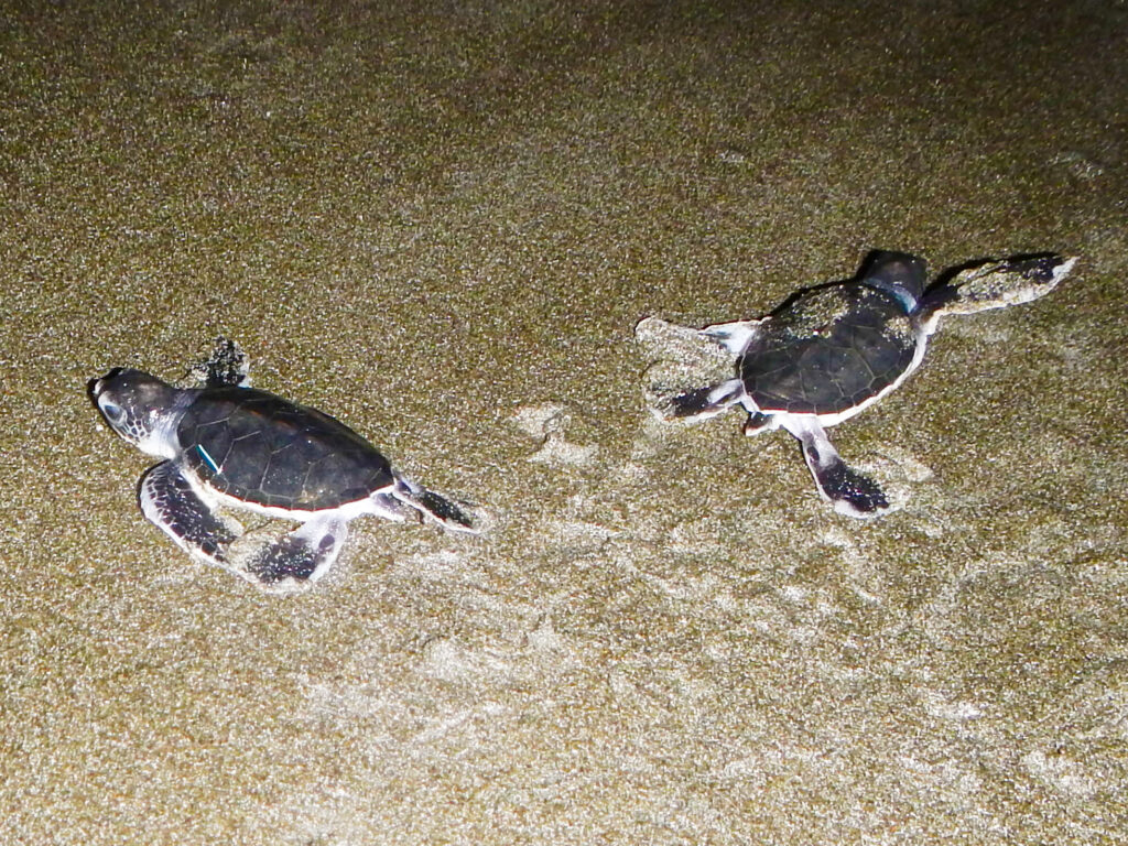 夜中、砂浜を散歩していたら、足元に子ガメがw 孵化後、導かれるよう海に進んでいく子ガメの姿を見守った