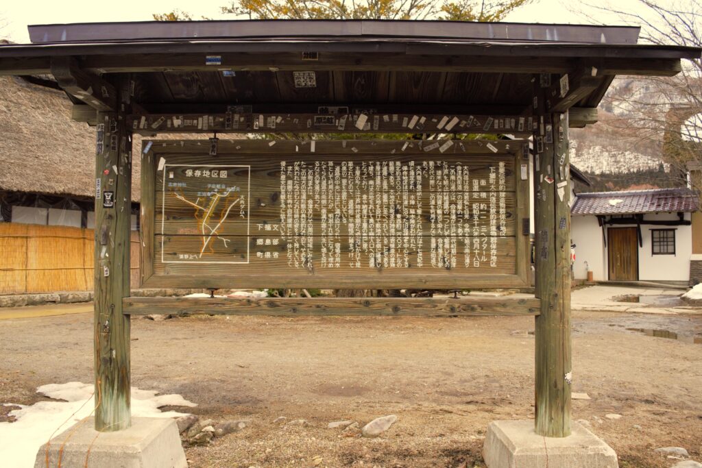 大内宿は重要伝統的建造物群保存地区…と書いてある案内板