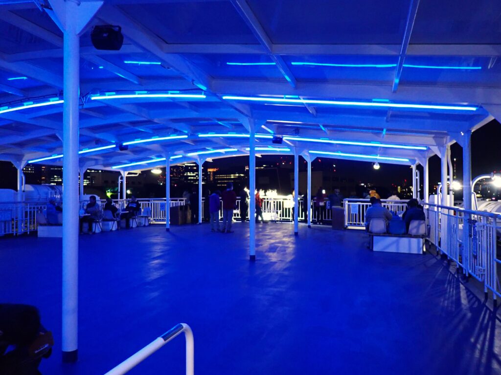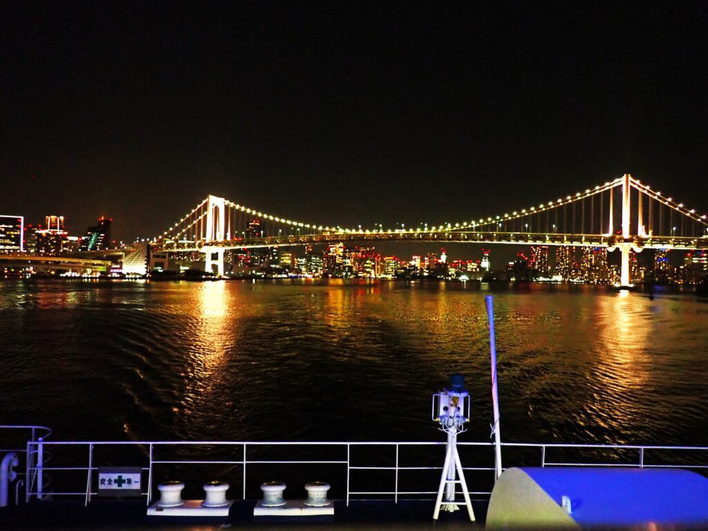 出港は夜。レインボーブリッジの灯りを横目に東京湾を進んでいく時間は、ただの移動ではなく、すでに旅の一部。