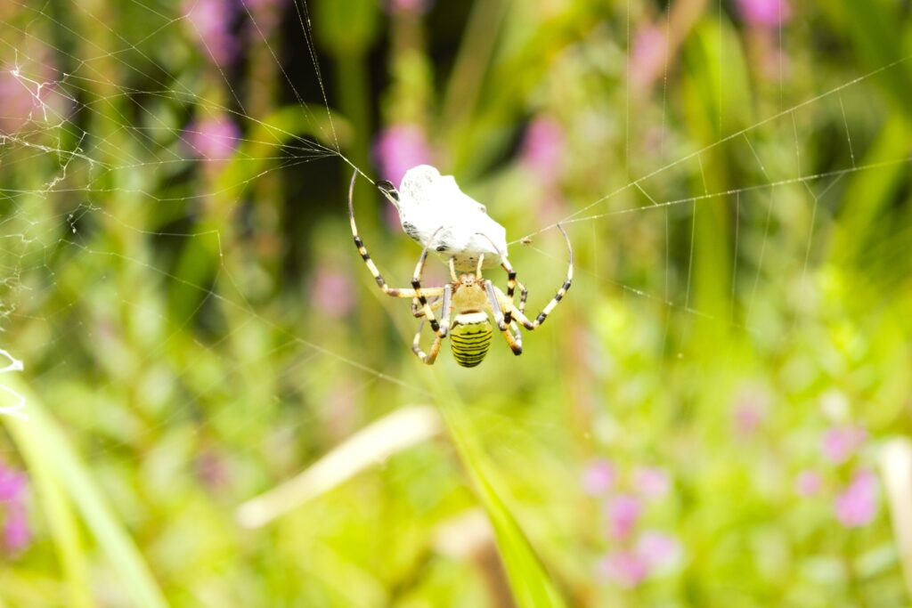 捕食中のナガコガネグモ