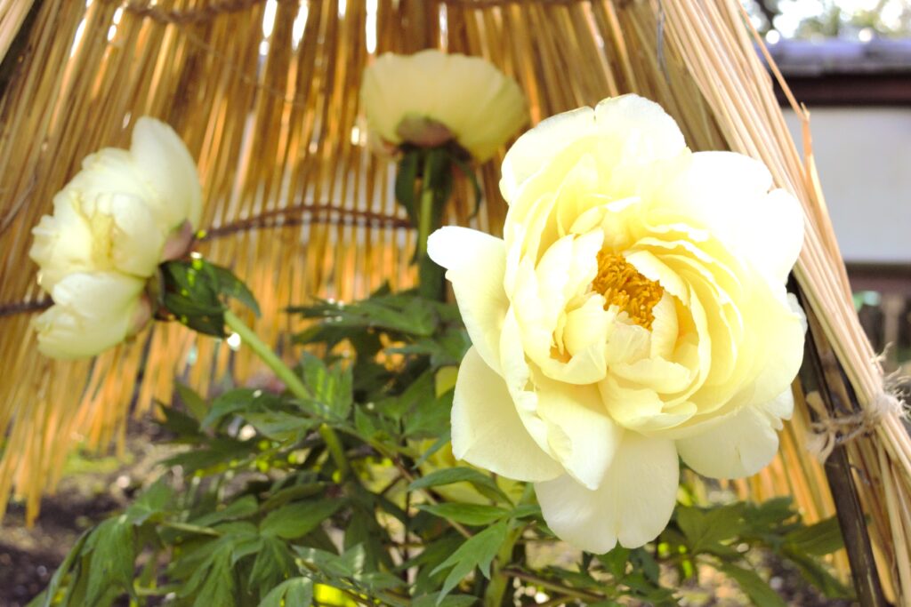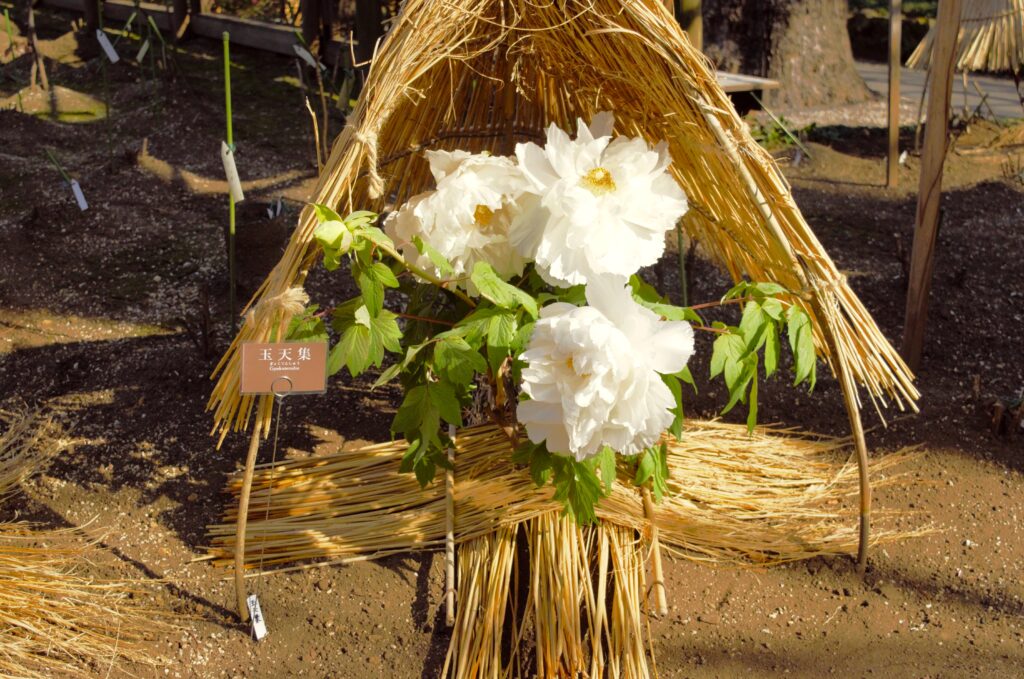 冬のわら囲いに包まれた牡丹の風景は、日本らしい美しさを感じられるスポット。