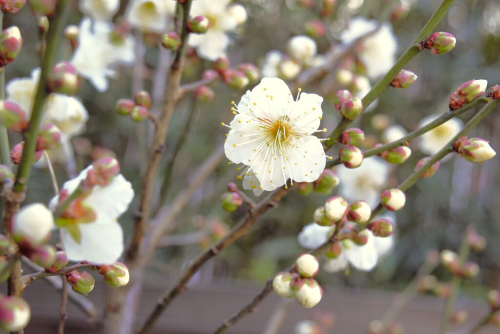 苑内では、早咲きの梅のほか蝋梅やクリスマスローズ、水仙などの花も楽しめます