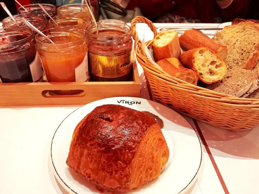 ヴェノワズリー(パン・オ・ショコラ)もサクサクで、中のチョコレートは甘すぎず適度にビター。